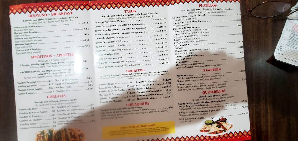 Servido con frijol, queso, lechuga, pico de gallo, jalapeño, crema y aguacate. Served with beans, cheese, lettuce, pico de gallo, jalapeño, cream and avocado.